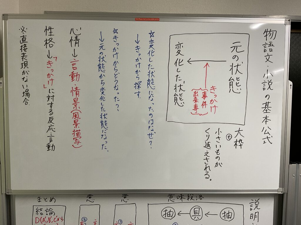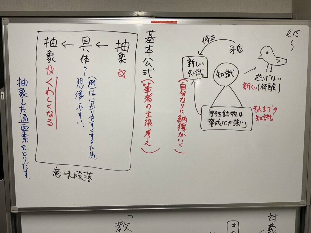 研修用ページ 2025.07.26 研修用ページです。 ホワイトボード実例を載せております。 目 次 ①評論文の基本公式②物語文の基本公式③その他 ①評論文の基本公式 初期~活用まで ②物語文の基本公式 ③その他